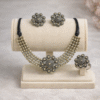 The design achieves a perfect balance between boldness and subtle elegance. The floral centerpiece creates visual interest, while the layered beads add softness and flow. This makes the jewellery suitable for both daytime and evening wear. The Oxidised Silver Necklace Set enhances the overall look without appearing heavy, allowing the wearer’s outfit to remain the focus.
